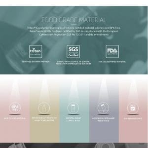 Relax bottles are made from high quality Tritan Copolyester (BPA free) and quality approved by FDA(USA) and LFGB(Germany). On top of that, it is eco-friendly as it is produced with less waste and energy. This is how Relax helps in saving our earth & environment by producing reusable and durable products.
